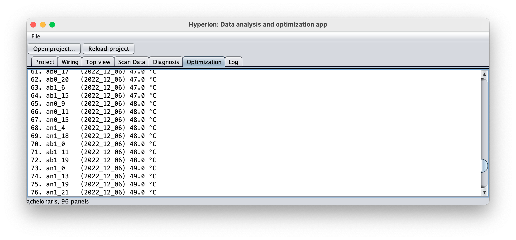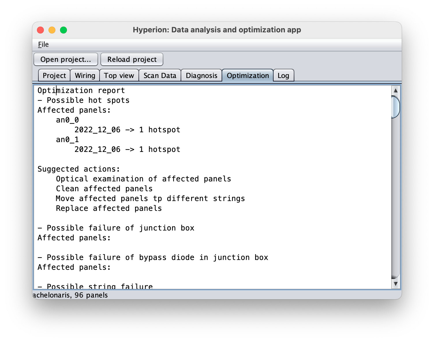Diagnosis and optimization results: