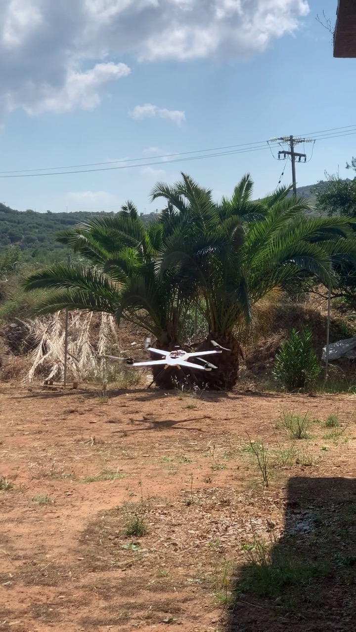 Drone performing inspection routine above "Achelonaris" plant (photo and interface capture):